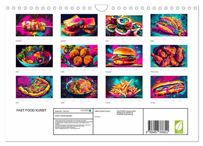 Dieser Kalender ist nicht nur ein beeindruckender Blickfang für jede Wand, sondern auch eine Möglichkeit, um Ihre Fantasie anzuregen und sich Gedanken über eine mögliche Speise zu machen. Ob im Büro, Küche, im Wohnzimmer oder im Empfangsbereich, dieser Kalender wird Sie jeden Monat auf eine Reise in die schnelle Kulinarik mitnehmen.
