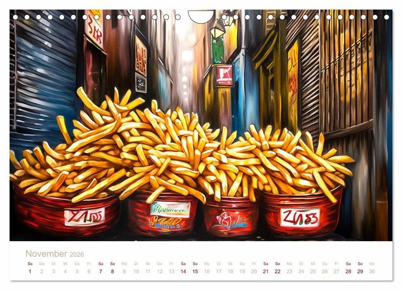 Unsere Wandkalender mit KI-generierten Bildern zeigen atemberaubende Bilder von leckerem Fast Food. Jedes Bild ist sorgfältig ausgewählt und bearbeitet, um die Schönheit und Einzigartigkeit jedes Essens zu betonen und Ihnen einen Eindruck von ihrem möglichen Essen zu geben.