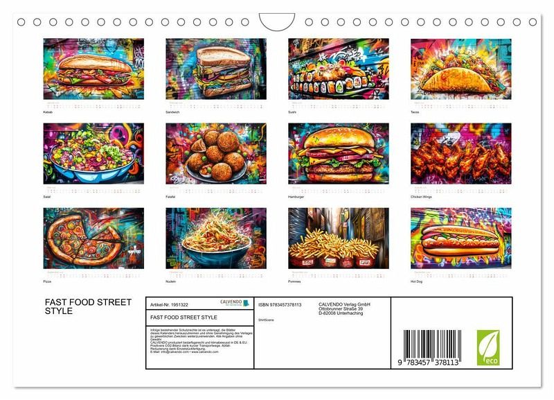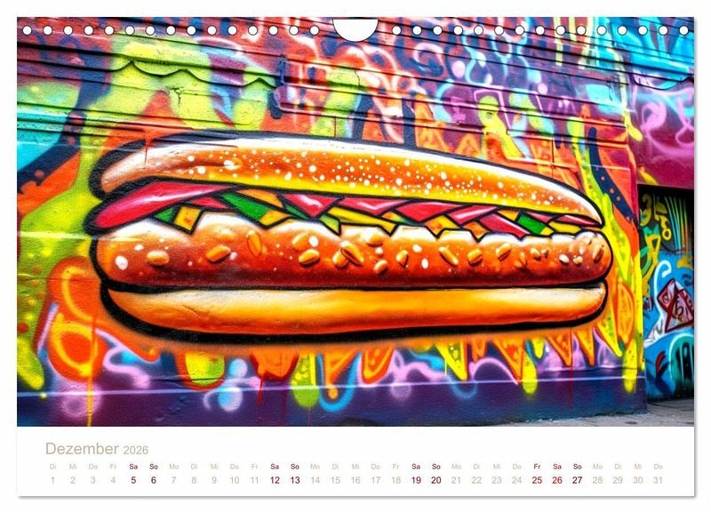 QUALITÄT - Hochwertiger Fotokalender mit 12 wunderschönen Motiven auf lichtbeständigem Bilderdruckpapier, robuste Spiralbindung mit Aufhängebügel.NACHHALTIG - deutliche Abfallreduzierung durch bedarfsgerechte Einzelstückfertigung, umweltfreundliches FSC-zertifiziertes Papier, Produktion in Deutschland, klimabewusste Logistik.PERFEKTES GESCHENK - Kalender für Freunde und Familie, für Kinder und Erwachsene, jung und alt, zu Weihnachten, Geburtstag oder zwischendurch.VIELFALT - Bildkalender in verschiedenen Formaten, z.B. DIN A5, DIN A4, DIN A3 sowie DIN A2. Ob Naturmotiv, Gemälde oder Fotos, ideal für ein persönliches Wohlfühlambiente.Graffiti Art vom schnellen Essen von Autor(in): ShirtScene