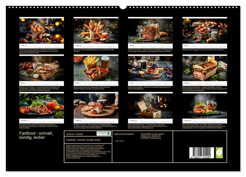 Sie lieben leckere, aber auch sündige Köstlichkeiten. Darf es auch mal etwas für zwischendurch sein? Wenn Sie diese fantastischen KI-Bilder des Fotokünstlers Peter Roder in den Händen halten, können Sie nicht widerstehen, denn sie sind eine perfekte Mischung aus visuellem Genuss und kulinarischer Inspiration. Diese köstlichen Fastfood-Leckereien verführen zum Probieren und Genießen und bringen die Geschmacksnerven zum Kribbeln. Ideal für Fastfood-Liebhaber, Liebhaberinnen und kulinarische Enthusiasten gleichermaßen.