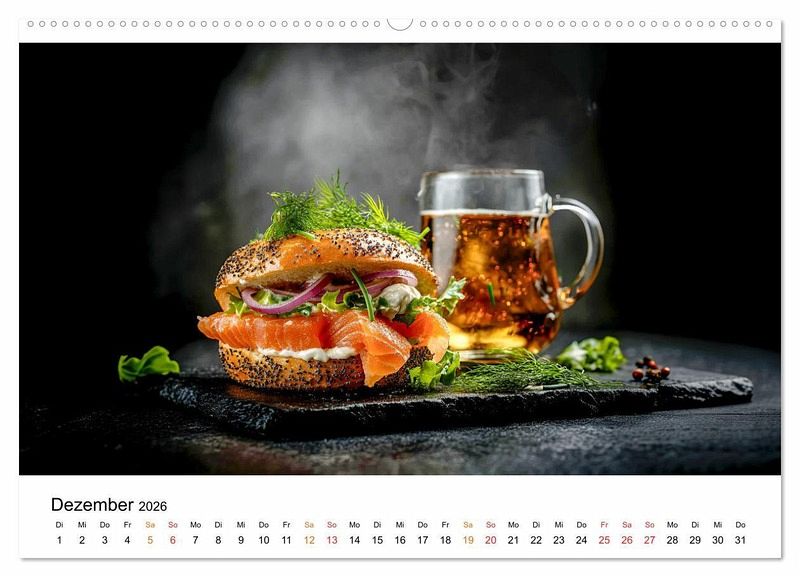 Dezember: Eine wahre Köstlichkeit - ein Bagel, belegt mit knackigem Salat, Frischkäse,hauchdünnen Räucherlachsscheiben, roten Zwiebelringen und als I-Tüpfelchen Dillfähnchen obenauf