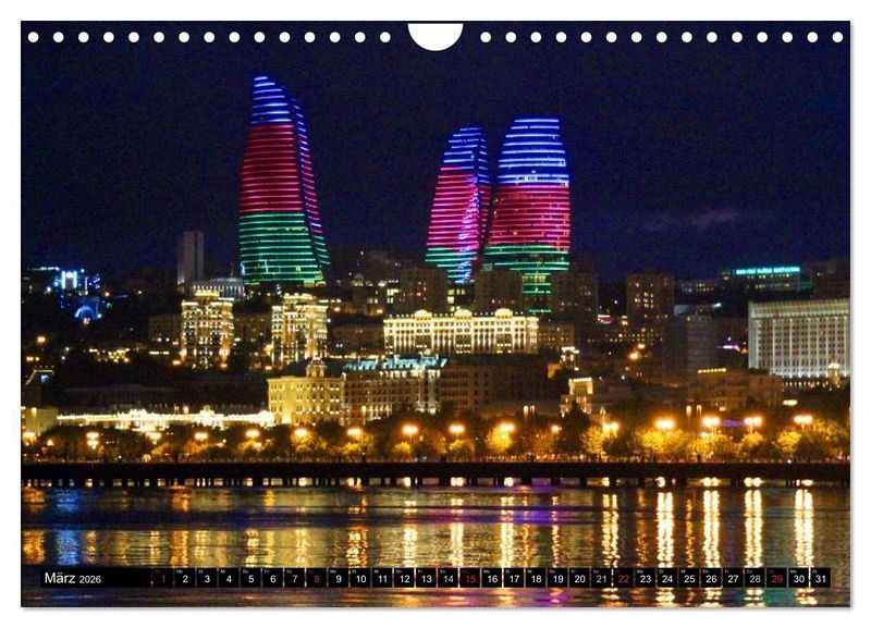 März: Moderne Hauptstadt: Baku mit den nachts prächtig illuminierten Flame Towers