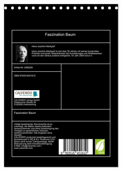 Obwohl schon tausendfach gesehen - hervorragende Baum-Fotografien faszinieren immer wieder aufs Neue und bieten unendliche Möglichkeiten der Betrachtung. Die 12 Kalenderblätter des professionellen Fotografen mit neutralem, dezent gehaltenem Kalendarium sind ein exzellenter Wandschmuck nicht nur für ausgesprochene Naturliebhaber