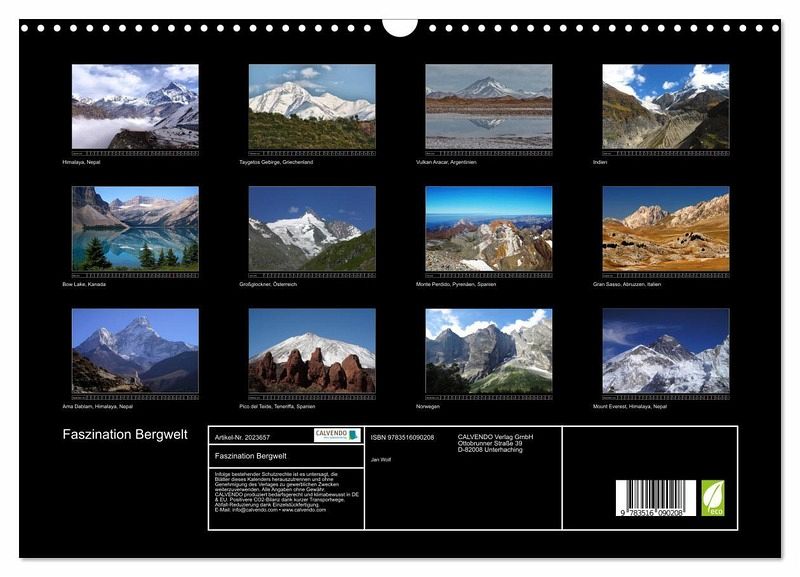 Hier kommt ein Kalender nicht nur für Bergsteiger, sondern auch für alle die die Bergwelt mit Ihren schroffen Gipfeln mögen. Holen Sie sich die verschiedenen Gebirge unserer Erde nach Haus, und genießen Sie täglich den Blick auf die faszinierende Bergwelt.