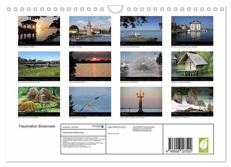 QUALITÄT - Hochwertiger Fotokalender mit 12 wunderschönen Motiven auf lichtbeständigem Bilderdruckpapier, robuste Spiralbindung mit Aufhängebügel.NACHHALTIG - deutliche Abfallreduzierung durch bedarfsgerechte Einzelstückfertigung, umweltfreundliches FSC-zertifiziertes Papier, Produktion in Deutschland, klimabewusste Logistik.PERFEKTES GESCHENK - Kalender für Freunde und Familie, für Kinder und Erwachsene, jung und alt, zu Weihnachten, Geburtstag oder zwischendurch.VIELFALT - Bildkalender in verschiedenen Formaten, z.B. DIN A5, DIN A4, DIN A3 sowie DIN A2. Ob Naturmotiv, Gemälde oder Fotos, ideal für ein persönliches Wohlfühlambiente.Impressionen vom Bodensee in Deutschland, Österreich und der Schweiz von Autor(in): Karsten-Thilo Raab