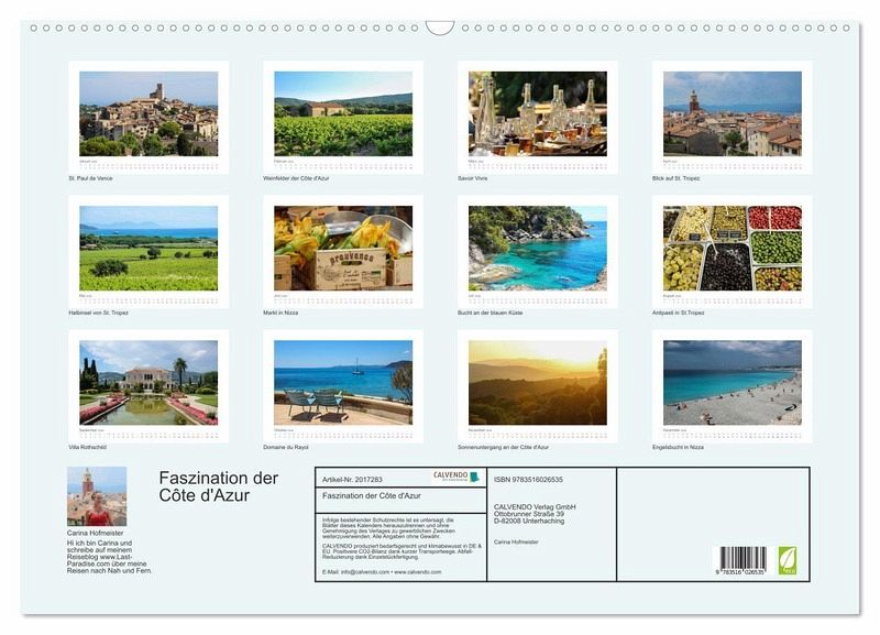 Von der berühmten Engelsbucht in Nizza über kleine Dörfer wie St. Paul de Vence bis zum beliebten Badeort der Stars in St. Tropez führt dieser Kalender in 12 wunderschönen Fotografien durch das Jahr.