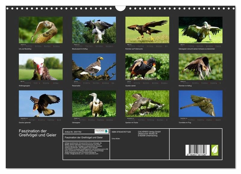 QUALITÄT - Hochwertiger Fotokalender mit 12 wunderschönen Motiven auf lichtbeständigem Bilderdruckpapier, robuste Spiralbindung mit Aufhängebügel.NACHHALTIG - deutliche Abfallreduzierung durch bedarfsgerechte Einzelstückfertigung, umweltfreundliches FSC-zertifiziertes Papier, Produktion in Deutschland, klimabewusste Logistik.PERFEKTES GESCHENK - Kalender für Freunde und Familie, für Kinder und Erwachsene, jung und alt, zu Weihnachten, Geburtstag oder zwischendurch.VIELFALT - Bildkalender in verschiedenen Formaten, z.B. DIN A5, DIN A4, DIN A3 sowie DIN A2. Ob Naturmotiv, Gemälde oder Fotos, ideal für ein persönliches Wohlfühlambiente.Greifvögel & Geier faszinieren mich von Autor(in): Erika Müller
