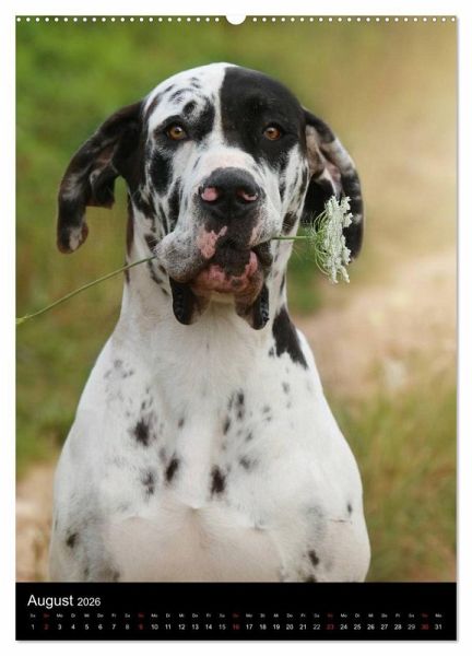 Auf 13 liebevoll ausgewählten Fotografien zeigt die Fotografin Marion Reiß-Seibert Deutsche Doggen im Farbschlag Schwarz-Weiß und Harlekin. Kreative Porträts zum Schmunzeln und hochwertige Porträts in Natur und Studio erfreuen das Herz des Hundefreundes jeden Monat aufs Neue.