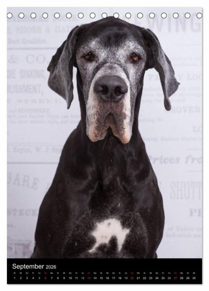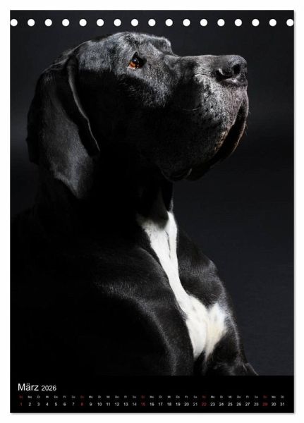 Auf 13 liebevoll ausgewählten Fotografien zeigt die Fotografin Marion Reiß-Seibert Deutsche Doggen im Farbschlag Schwarz-Weiß und Harlekin. Kreative Porträts zum Schmunzeln und hochwertige Porträts in Natur und Studio erfreuen das Herz des Hundefreundes jeden Monat aufs Neue.