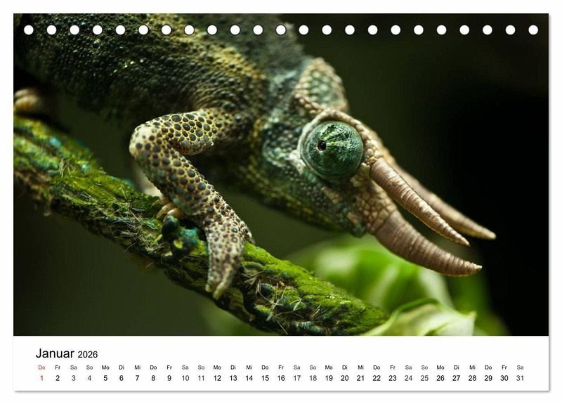 Januar: Dreihornchamäleon -Trioceros jacksonii