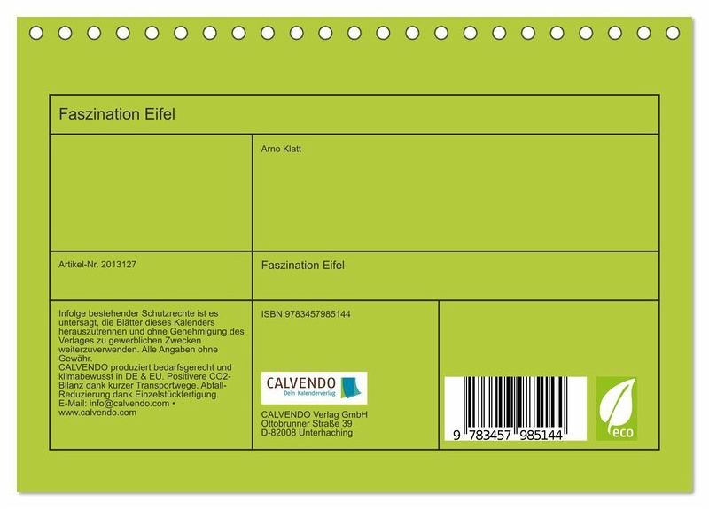 QUALITÄT - Hochwertiger Fotokalender mit 12 wunderschönen Motiven auf lichtbeständigem Bilderdruckpapier, robuste Spiralbindung.NACHHALTIG - deutliche Abfallreduzierung durch bedarfsgerechte Einzelstückfertigung, umweltfreundliches FSC-zertifiziertes Papier, Produktion in Deutschland, klimabewusste Logistik.PERFEKTES GESCHENK - Kalender für Freunde und Familie, für Kinder und Erwachsene, jung und alt, zu Weihnachten, Geburtstag oder zwischendurch.VIELFALT - Bildkalender in verschiedenen Formaten, z.B. DIN A5, DIN A4, DIN A3 sowie DIN A2. Ob Naturmotiv, Gemälde oder Fotos, ideal für ein persönliches Wohlfühlambiente.Die schönsten Eindrücke in der Eifel von Autor(in): Arno Klatt