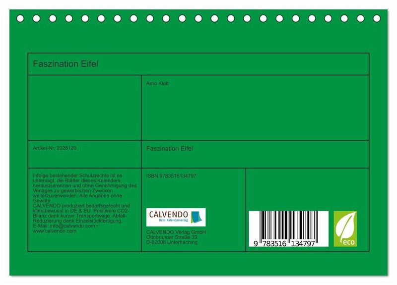 QUALITÄT - Hochwertiger Fotokalender mit 12 wunderschönen Motiven auf lichtbeständigem Bilderdruckpapier, robuste Spiralbindung.NACHHALTIG - deutliche Abfallreduzierung durch bedarfsgerechte Einzelstückfertigung, umweltfreundliches FSC-zertifiziertes Papier, Produktion in Deutschland, klimabewusste Logistik.PERFEKTES GESCHENK - Kalender für Freunde und Familie, für Kinder und Erwachsene, jung und alt, zu Weihnachten, Geburtstag oder zwischendurch.VIELFALT - Bildkalender in verschiedenen Formaten, z.B. DIN A5, DIN A4, DIN A3 sowie DIN A2. Ob Naturmotiv, Gemälde oder Fotos, ideal für ein persönliches Wohlfühlambiente.Die schönsten Eindrücke in der Eifel von Autor(in): Arno Klatt
