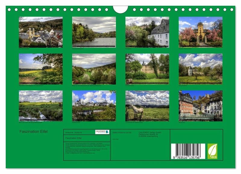 Ein kleiner Einblick in meine Heimat, die Eifel. Eine herrliche Landschaft mit vielen Sehenswürdigkeiten, bietet die Eifel. Im Kalender sind einige Eindrücke davon zu sehen. Tauchen sie mit ein in diese schöne Landschaft der Eifel.