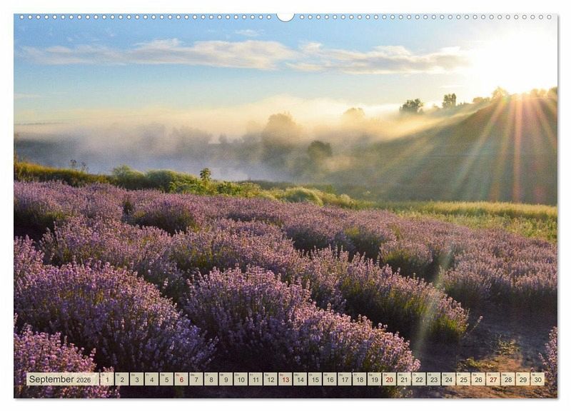 September: Die berühmten Lavendelfelder in der Provence bei Sonnenaufgang