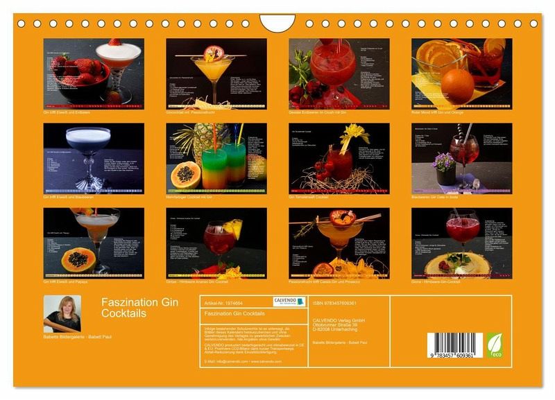 QUALITÄT - Hochwertiger Fotokalender mit 12 wunderschönen Motiven auf lichtbeständigem Bilderdruckpapier, robuste Spiralbindung mit Aufhängebügel.NACHHALTIG - deutliche Abfallreduzierung durch bedarfsgerechte Einzelstückfertigung, umweltfreundliches FSC-zertifiziertes Papier, Produktion in Deutschland, klimabewusste Logistik.PERFEKTES GESCHENK - Kalender für Freunde und Familie, für Kinder und Erwachsene, jung und alt, zu Weihnachten, Geburtstag oder zwischendurch.VIELFALT - Bildkalender in verschiedenen Formaten, z.B.DIN A5, DIN A4, DIN A3 sowie DIN A2. Ob Naturmotiv, Gemälde oder Fotos, ideal für ein persönliches Wohlfühlambiente.Farbenfrohe Cocktailvariationen mit Gin und mit Rezept von Autor(in): Babett's Bildergalerie