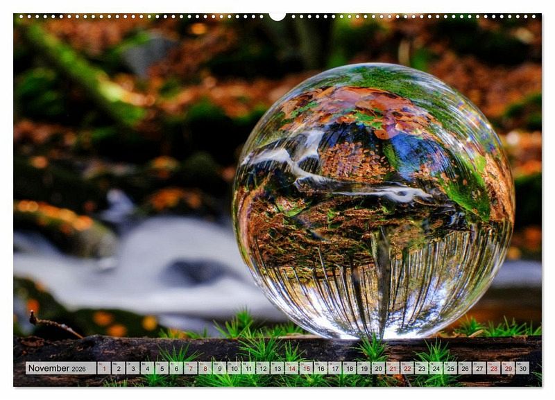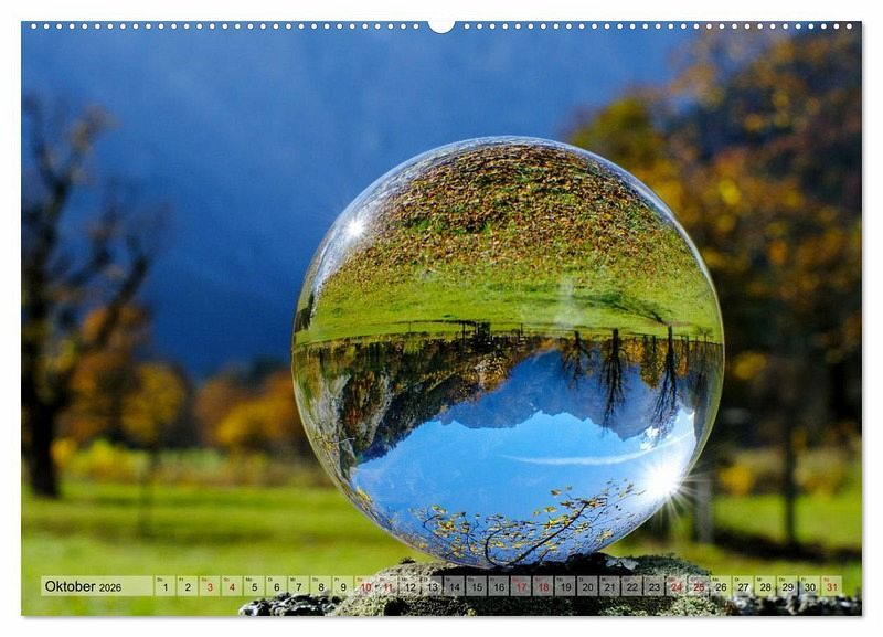 Eine scheinbar auf dem Kopf stehende Welt, die im inneren einer Glaskugel gefangen ist. Durch die Lichtbrechung in der Kugel kommt es zu einer Spiegelung. Die gesamte Umgebung wird hierdurch auf den Kopf gestellt.
