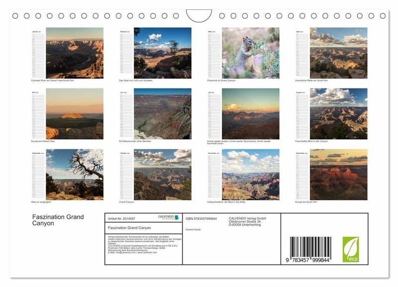 QUALITÄT - Hochwertiger Fotokalender mit 12 wunderschönen Motiven auf lichtbeständigem Bilderdruckpapier, robuste Spiralbindung mit Aufhängebügel.NACHHALTIG - deutliche Abfallreduzierung durch bedarfsgerechte Einzelstückfertigung, umweltfreundliches FSC-zertifiziertes Papier, Produktion in Deutschland, klimabewusste Logistik.PERFEKTES GESCHENK - Kalender für Freunde und Familie, für Kinder und Erwachsene, jung und alt, zu Weihnachten, Geburtstag oder zwischendurch.VIELFALT - Bildkalender in verschiedenen Formaten, z.B. DIN A5, DIN A4, DIN A3 sowie DIN A2. Ob Naturmotiv, Gemälde oder Fotos, ideal für ein persönliches Wohlfühlambiente.Ein unbeschreiblicher Anblick, wenn man am Rand des Canyon steht von Autor(in): Andrea Potratz.