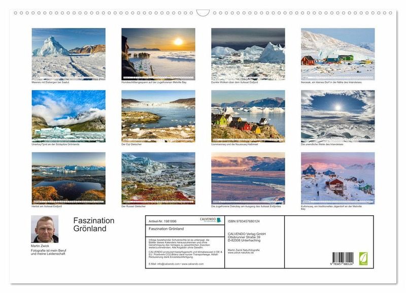 QUALITÄT - Hochwertiger Fotokalender mit 12 wunderschönen Motiven auf lichtbeständigem Bilderdruckpapier, robuste Spiralbindung mit Aufhängebügel.NACHHALTIG - deutliche Abfallreduzierung durch bedarfsgerechte Einzelstückfertigung, umweltfreundliches FSC-zertifiziertes Papier, Produktion in Deutschland, klimabewusste Logistik.PERFEKTES GESCHENK - Kalender für Freunde und Familie, für Kinder und Erwachsene, jung und alt, zu Weihnachten, Geburtstag oder zwischendurch.VIELFALT - Bildkalender in verschiedenen Formaten, z.B. DIN A5, DIN A4, DIN A3 sowie DIN A2. Ob Naturmotiv, Gemälde oder Fotos, ideal für ein persönliches Wohlfühlambiente.Landschaft und Leben in der Arktis von Autor(in): Martin Zwick