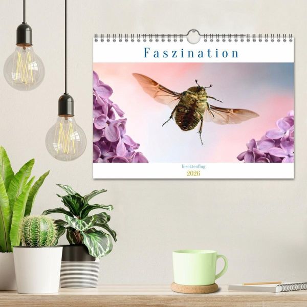 Der Kalender offenbart einen kurzen Moment im Leben der Insekten, die sich im Flug befinden und vom menschlichen Auge kaum erfasst werden kann. In farbenfrohen Aufnahmen lässt er den Betrachter teilhaben an diesem kleinen Naturwunder, das sich täglich in unseren Gärten abspielt.