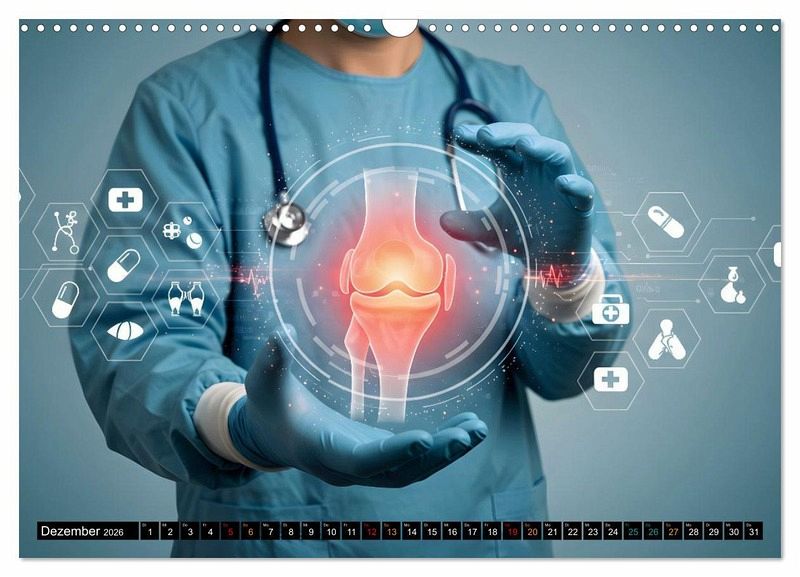 Das Kniegelenk ist eines der komplexesten und am stärksten belasteten Gelenke des menschlichen Körpers. Es ermöglicht Stabilität, Flexibilität und Mobilität - Tag für Tag. Ob in Bewegung oder in Ruhe, im Sport oder im Alltag: Das Knie ist ein wahres Wunderwerk der Biomechanik. Für Mediziner:innen, Sportbegeisterte oder alle, die sich für den menschlichen Bewegungsapparat interessieren. Dieser Kalender wurde mit Unterstützung der KI erstellt.