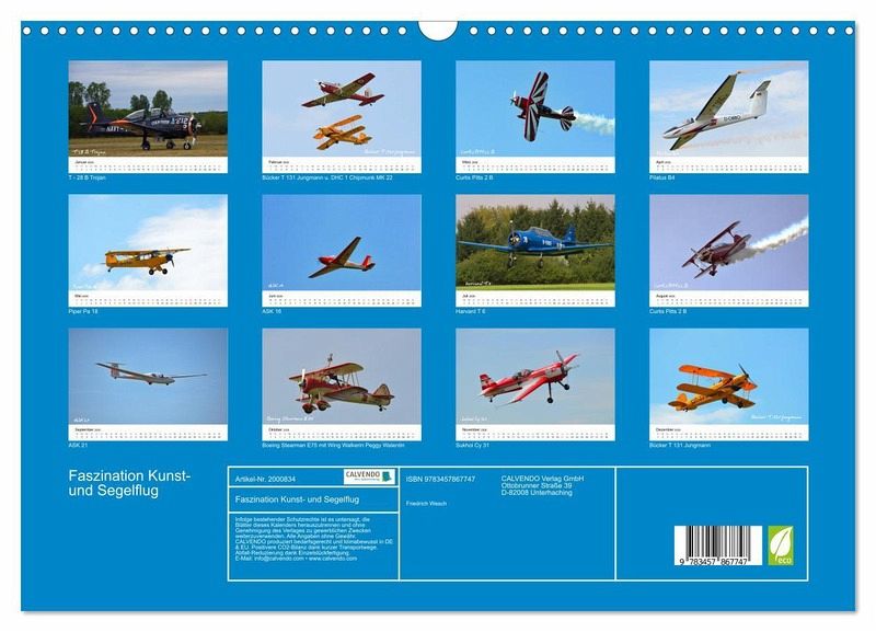QUALITÄT - Hochwertiger Fotokalender mit 12 wunderschönen Motiven auf lichtbeständigem Bilderdruckpapier, robuste Spiralbindung mit Aufhängebügel.NACHHALTIG - deutliche Abfallreduzierung durch bedarfsgerechte Einzelstückfertigung, umweltfreundliches FSC-zertifiziertes Papier, Produktion in Deutschland, klimabewusste Logistik.PERFEKTES GESCHENK - Kalender für Freunde und Familie, für Kinder und Erwachsene, jung und alt, zu Weihnachten, Geburtstag oder zwischendurch.VIELFALT - Bildkalender in verschiedenen Formaten, z.B. DIN A5, DIN A4, DIN A3 sowie DIN A2. Ob Naturmotiv, Gemälde oder Fotos, ideal für ein persönliches Wohlfühlambiente.Flugzeugimpressionen von Autor(in): Friedrich Wesch