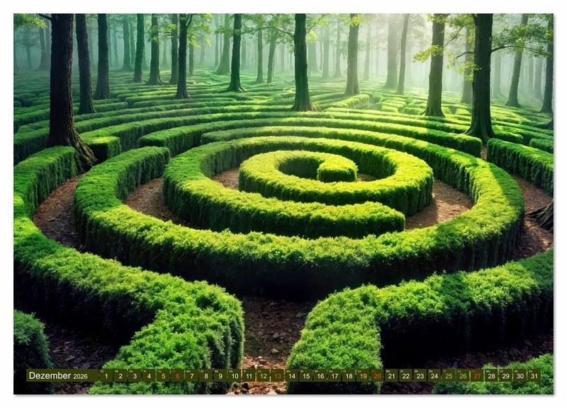 Dieser Kalender nimmt Sie mit auf eine besondere Reise: zu Labyrinthen inmitten der Natur - Orte der Ruhe, Einkehr und Inspiration. Jeder Monat zeigt Wege, die nicht in die Irre führen, sondern zur eigenen Mitte. Entdecken Sie die stille Kraft natürlicher Labyrinthe und lassen Sie sich von ihrer Symbolik durchs Jahr begleiten. Dieser Kalender wurde mit Unterstützung der KI erstellt.