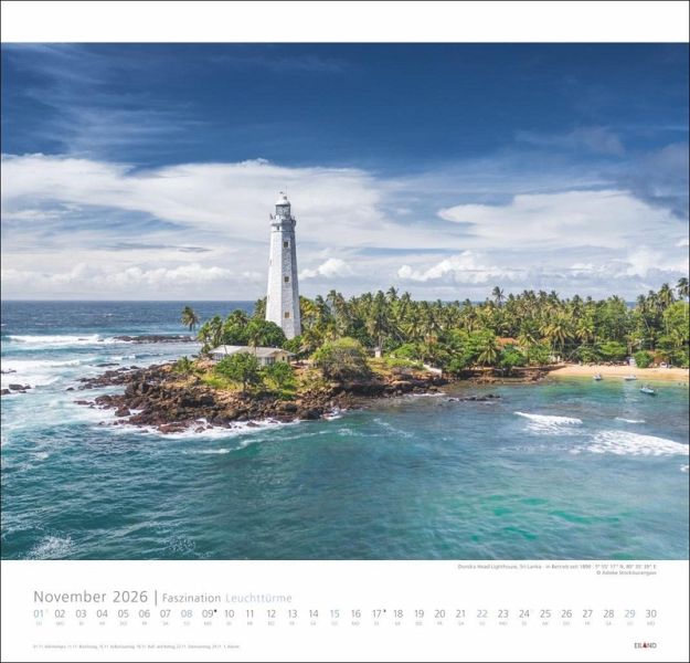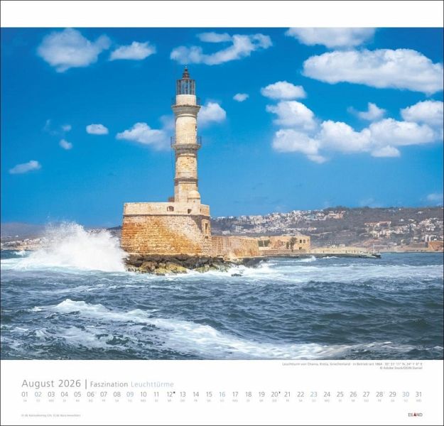 Bringt Leuchtturm-Liebhaber:innen zum Strahlen: Der neue Jahres-Wandkalender 2026 "Faszination Leuchttürme" ist da! Zum Davonträumen: Monat für Monat malerische Küsten und die schönsten Leuchttürme aus aller Welt in Harmonie mit der umgebenden Landschaft Ein Blickfang in jeder Wohnung: Großer Wandkalender im Format 48x46 cm, mit Monatskalendarium Mit erstklassigen Fotos und strahlendschönen Bilder: Die ganze Vielfalt der internationalen Leuchtturm-Architektur Mehr Meer geht nicht: Hochwertige Leuchtturm-Kalender aus dem Hause Eiland im Athesia Kalenderverlag