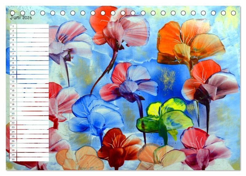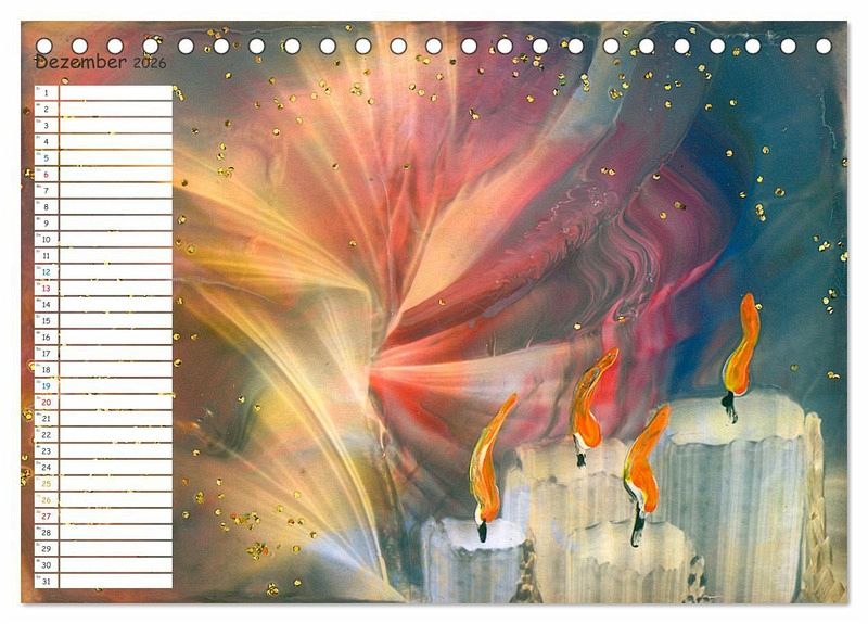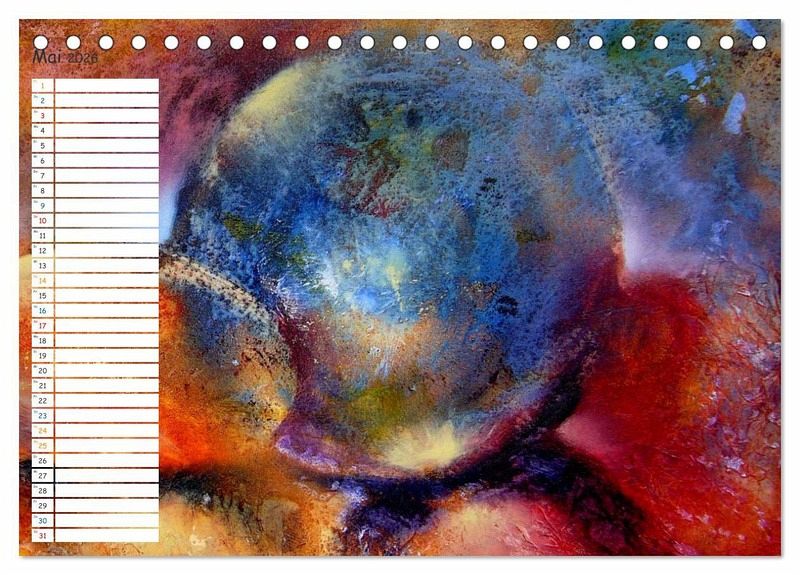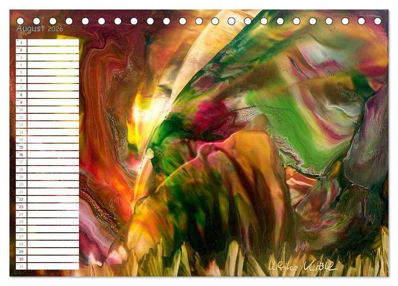 In diesem Kunstkalender erwartet Sie Monat für Monat ein interessantes und zugleich faszinierendes Bildmotiv harmonischer Farbkompositionen. Realistische und abstrakte Kunstwerke wechseln sich ab.