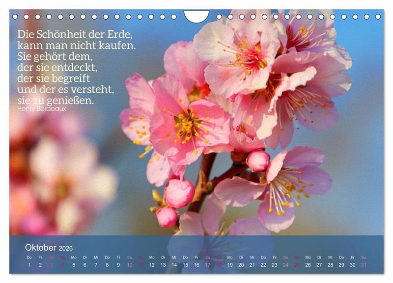 QUALITÄT - Hochwertiger Fotokalender mit 12 wunderschönen Motiven auf lichtbeständigem Bilderdruckpapier, robuste Spiralbindung mit Aufhängebügel.NACHHALTIG - deutliche Abfallreduzierung durch bedarfsgerechte Einzelstückfertigung, umweltfreundliches FSC-zertifiziertes Papier, Produktion in Deutschland, klimabewusste Logistik.PERFEKTES GESCHENK - Kalender für Freunde und Familie, für Kinder und Erwachsene, jung und alt, zu Weihnachten, Geburtstag oder zwischendurch.VIELFALT - Bildkalender in verschiedenen Formaten, z.B. DIN A5, DIN A4, DIN A3 sowie DIN A2. Ob Naturmotiv, Gemälde oder Fotos, ideal für ein persönliches Wohlfühlambiente.Mandelblüte an der Südlichen Weinstraße mit Zitaten von Autor(in): Sulamay Fillinger Fotografie