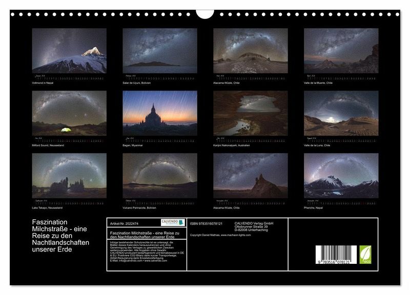 QUALITÄT - Hochwertiger Fotokalender mit 12 wunderschönen Motiven auf lichtbeständigem Bilderdruckpapier, robuste Spiralbindung mit Aufhängebügel.NACHHALTIG - deutliche Abfallreduzierung durch bedarfsgerechte Einzelstückfertigung, umweltfreundliches FSC-zertifiziertes Papier, Produktion in Deutschland, klimabewusste Logistik.PERFEKTES GESCHENK - Kalender für Freunde und Familie, für Kinder und Erwachsene, jung und alt, zu Weihnachten, Geburtstag oder zwischendurch.VIELFALT - Bildkalender in verschiedenen Formaten, z.B. DIN A5, DIN A4, DIN A3 sowie DIN A2. Ob Naturmotiv, Gemälde oder Fotos, ideal für ein persönliches Wohlfühlambiente.Faszinierende Aufnahmen des Nachthimmels aus aller Welt von Autor(in): Daniel Mathias