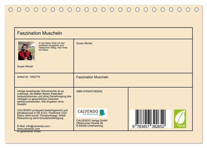 Tauchen Sie ein in die faszinierende Welt der Muscheln! Entdecken Sie die unglaubliche Vielfalt und Schönheit dieser maritimen Schätze, die seit Jahrtausenden Menschen auf der ganzen Welt begeistern. "Faszination Muscheln" ist eine Einladung, die Wunder der Natur mit neuen Augen zu sehen und die Geheimnisse der Ozeane zu erkunden. Dieser Kalender wurde mit Unterstützung der KI erstellt.