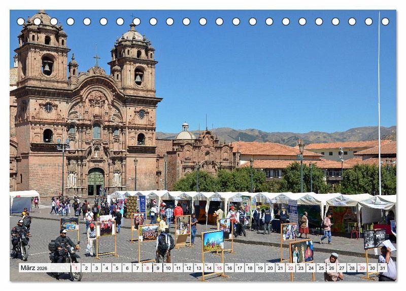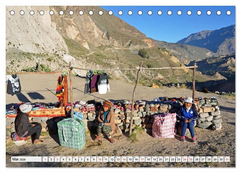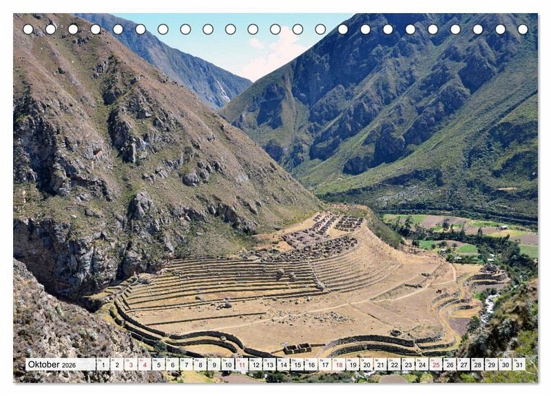 Nicht nur ungemein vielfältige Landschaftsformationen, vom Hochgebirge der Anden über Wüstengebiete und zerklüftete Küstenformationen bis hin zum tropischen Regenwald, aber auch eine große Geschichte, gepaart mit bedeutenden Baudenkmälern und freundlichen Menschen, prägen dieses südamerikanische Land. Der Autor besuchte den südlichen Teil von Peru, wanderte dabei vier Tage auf dem berühmten Inka-Trail bis Machu Picchu und präsentiert im Kalender einige seiner beeindruckenden Fotos.