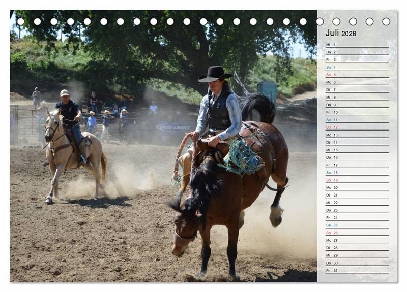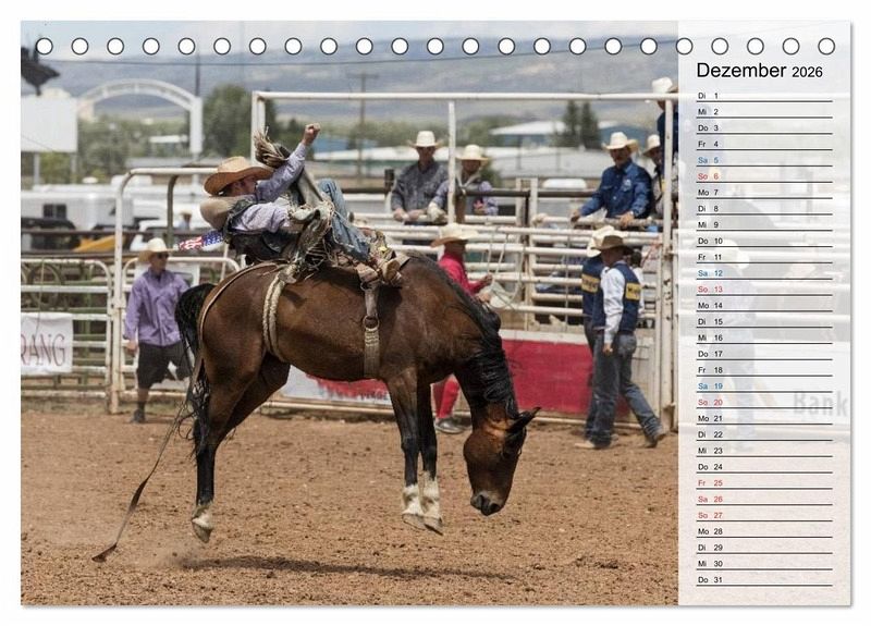 Beim Rodeo messen Cowboys und Cowgirls ihr Können in halsbrecherischen Stunts. In verschiedenen Disziplinen zeigen die Akteure ihr außergewöhnliches Geschick mit dem Lasso, beim Reiten auf wilden Mustangs oder beim Einfangen von Rindern. Lassen Sie sich zurückversetzen in die Zeit des Wilden Westens. Mit diesem außergewöhnlichen Kalender mit Planerfunktion erleben Sie einen Hauch von Freiheit und Abenteuer. Das ideale Geschenk für alle Liebhaber der Western-Ära.