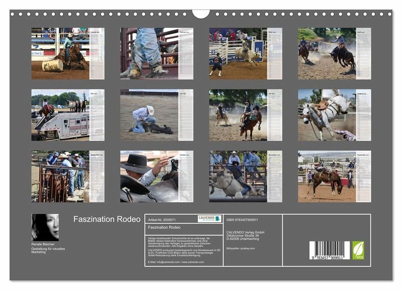QUALITÄT - Hochwertiger Fotokalender mit 12 wunderschönen Motiven auf lichtbeständigem Bilderdruckpapier, robuste Spiralbindung mit Aufhängebügel.NACHHALTIG - deutliche Abfallreduzierung durch bedarfsgerechte Einzelstückfertigung, umweltfreundliches FSC-zertifiziertes Papier, Produktion in Deutschland, klimabewusste Logistik.PERFEKTES GESCHENK - Kalender für Freunde und Familie, für Kinder und Erwachsene, jung und alt, zu Weihnachten, Geburtstag oder zwischendurch.VIELFALT - Bildkalender in verschiedenen Formaten, z.B. DIN A5, DIN A4, DIN A3 sowie DIN A2. Ob Naturmotiv, Gemälde oder Fotos, ideal für ein persönliches Wohlfühlambiente.Aktionsreiche und stimmungsvolle Bilder aus der Welt des Rodeosports von Autor(in): Renate Bleicher
