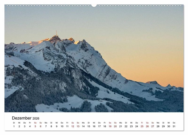 Der Säntis (2502 m.ü.M.) ist durch seine exponierte Lage im Alpstein-Gebirgszug eine von weither sichtbare Landmarke. Dreizehn Bilder zeigen den faszinierenden Berg in verschiedenen Jahres- und Tageszeiten, Wetterlagen und Lichtstimmungen. Dieser Kalender ist somit ein Muss für jeden Einheimischen, Heimweh-Ostschweizer und jeden Appenzeller-Fan und die Gelegenheit, "ihren" Berg in die eigene Stube zu holen.