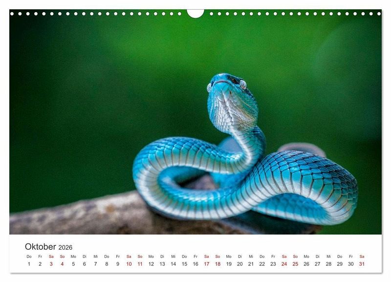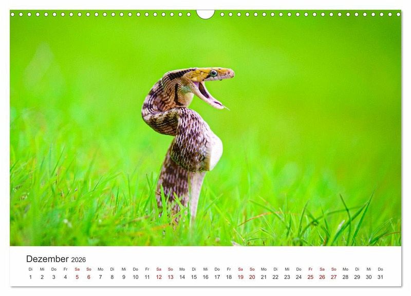 Entdecke die Schönheit und Faszination der Schlangen mit unserem exklusiven Schlangen-Kalender! Jeder Monat bietet dir ein atemberaubendes Foto einer anderen Schlangenart aus aller Welt. Erlebe die Eleganz der Python, die Kraft der Kobra und vieles mehr. Dieser Kalender eignet sich perfekt für alle, die Natur, Fotografie und besondere Tiere lieben. Sichere dir jetzt deinen Schlangen-Kalender und lass dich jeden Monat aufs Neue von der Schönheit dieser faszinierenden Tiere verzaubern!