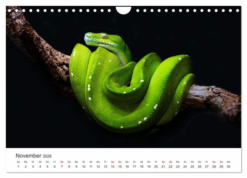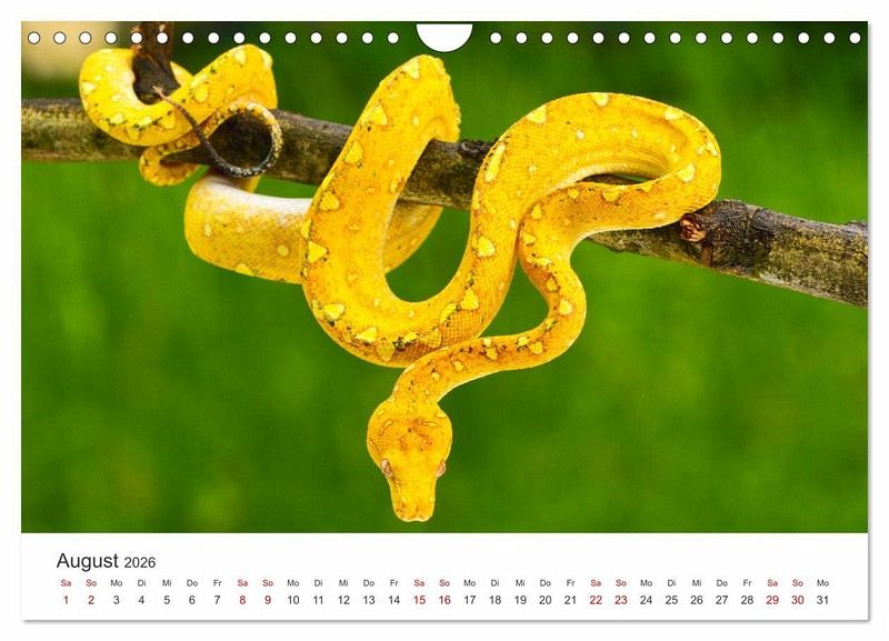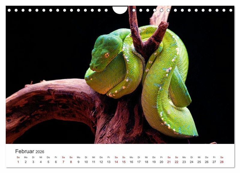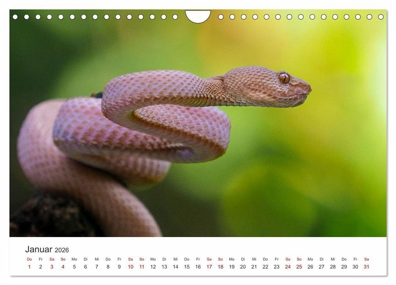 Entdecke die Schönheit und Faszination der Schlangen mit unserem exklusiven Schlangen-Kalender! Jeder Monat bietet dir ein atemberaubendes Foto einer anderen Schlangenart aus aller Welt. Erlebe die Eleganz der Python, die Kraft der Kobra und vieles mehr. Dieser Kalender eignet sich perfekt für alle, die Natur, Fotografie und besondere Tiere lieben. Sichere dir jetzt deinen Schlangen-Kalender und lass dich jeden Monat aufs Neue von der Schönheit dieser faszinierenden Tiere verzaubern!