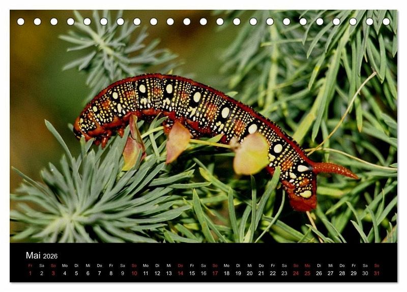 Jeder Schmetterling muss erst einmal ein Leben als Raupe verbringen. Mein Kalender zeigt einige dieser kleinen Naturschönheiten. Ein Muß für jeden Naturfreund.
