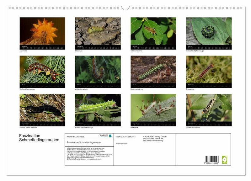 QUALITÄT - Hochwertiger Fotokalender mit 12 wunderschönen Motiven auf lichtbeständigem Bilderdruckpapier, robuste Spiralbindung mit Aufhängebügel.NACHHALTIG - deutliche Abfallreduzierung durch bedarfsgerechte Einzelstückfertigung, umweltfreundliches FSC-zertifiziertes Papier, Produktion in Deutschland, klimabewusste Logistik.PERFEKTES GESCHENK - Kalender für Freunde und Familie, für Kinder und Erwachsene, jung und alt, zu Weihnachten, Geburtstag oder zwischendurch.VIELFALT - Bildkalender in verschiedenen Formaten, z.B. DIN A5, DIN A4, DIN A3 sowie DIN A2. Ob Naturmotiv, Gemälde oder Fotos, ideal für ein persönliches Wohlfühlambiente.In diesem Kalender werden seltene Raupen von Tag- und Nachtfaltern