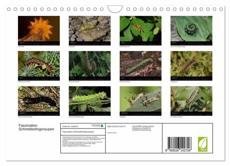 QUALITÄT - Hochwertiger Fotokalender mit 12 wunderschönen Motiven auf lichtbeständigem Bilderdruckpapier, robuste Spiralbindung mit Aufhängebügel.NACHHALTIG - deutliche Abfallreduzierung durch bedarfsgerechte Einzelstückfertigung, umweltfreundliches FSC-zertifiziertes Papier, Produktion in Deutschland, klimabewusste Logistik.PERFEKTES GESCHENK - Kalender für Freunde und Familie, für Kinder und Erwachsene, jung und alt, zu Weihnachten, Geburtstag oder zwischendurch.VIELFALT - Bildkalender in verschiedenen Formaten, z.B. DIN A5, DIN A4, DIN A3 sowie DIN A2. Ob Naturmotiv, Gemälde oder Fotos, ideal für ein persönliches Wohlfühlambiente.In diesem Kalender werden seltene Raupen von Tag- und Nachtfaltern