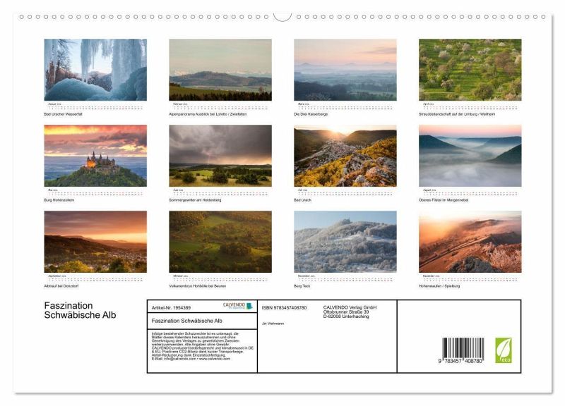PREMIUM-LINIE - Brillanter Fotokalender mit 12 wunderschönen Motiven, Kunstdruck in Hochglanz in Museumsqualität.QUALITÄT - edle Materialien, stabile Rückwand mit 2 innovativen Einstecktaschen für eine optimale Präsentation an der Wand.NACHHALTIG - deutliche Abfallreduzierung durch bedarfsgerechte Einzelstückfertigung, umweltfreundliches FSC-zertifiziertes Papier, Produktion in Deutschland, klimabewusste Logistik.PERFEKTES GESCHENK - Kalender für Freunde und Familie, für Kinder und Erwachsene, jung und alt, zu Weihnachten, Geburtstagoder zwischendurch.Stimmungsvolle Landschaften der Schwäbischen Alb. von Autor(in): Jiri Viehmann