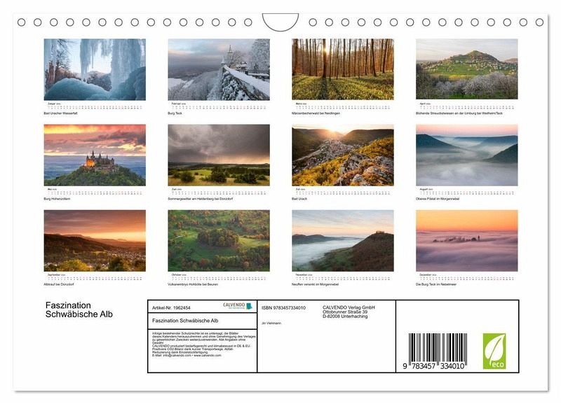 QUALITÄT - Hochwertiger Fotokalender mit 12 wunderschönen Motiven auf lichtbeständigem Bilderdruckpapier, robuste Spiralbindung mit Aufhängebügel.NACHHALTIG - deutliche Abfallreduzierung durch bedarfsgerechte Einzelstückfertigung, umweltfreundliches FSC-zertifiziertes Papier, Produktion in Deutschland, klimabewusste Logistik.PERFEKTES GESCHENK - Kalender für Freunde und Familie, für Kinder und Erwachsene, jung und alt, zu Weihnachten, Geburtstag oder zwischendurch.VIELFALT - Bildkalender in verschiedenen Formaten, z.B. DIN A5, DIN A4, DIN A3 sowie DIN A2. Ob Naturmotiv, Gemälde oder Fotos, ideal für ein persönliches Wohlfühlambiente.Stimmungsvolle Landschaften der Schwäbischen Alb. von Autor(in): Jiri Viehmann
