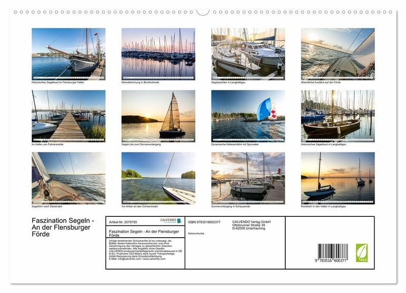 Die Flensburger Förde zählt zu den schönsten Segelrevieren Nordeuropas - und dieser Kalender fängt ihre besondere Atmosphäre in ausdrucksstarken Bildern ein. "Faszination Segeln - An der Flensburger Förde" begleitet Sie durch das Jahr mit zwölf faszinierenden Aufnahmen, die die Leidenschaft fürs Segeln und die Schönheit der Küstenlandschaft auf einzigartige Weise verbinden. Elegante Yachten, historische Segelboote und ruhige Momente auf dem Wasser zeigen die Vielfalt und den Reiz des Segelsports an der deutsch-dänischen Grenze. Dieser Kalender ist ein visueller Genuss für Segelbegeisterte, Meeresfreunde und alle, die von Wind und Wellen träumen. Ideal auch als Geschenk - für ein Jahr voller maritimer Inspiration