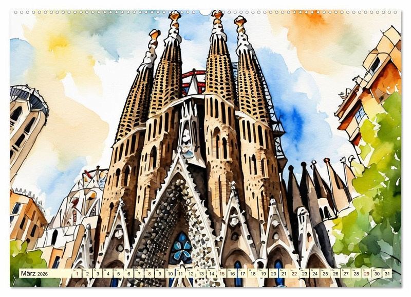Spanien ist ein Land mit einer reichen Tradition, faszinierender Natur und überwältigender Architektur. Die spanische Kultur ist geprägt von einer Mischung aus römischen, maurischen und christlichen Einflüssen, die sich in der Architektur des Landes widerspiegelt. Die Natur Spaniens ist ebenso vielfältig wie beeindruckend. Von den schneebedeckten Gipfeln der Pyrenäen bis zu sonnenverwöhnten Stränden bietet das Land traumhafte Landschaften. Die berühmte Sagrada Familia von Antoni Gaudí in Barcelona ist ein herausragendes Beispiel für die einzigartige Architektur des Landes. Ein Besuch in Spanien ist eine unvergessliche Erfahrung, die jeden Besucher begeistern wird. Eine kleine Auswahl dieser sehenswerten Ziele wurde hier unter Zuhilfenahme der KI in zauberhaften Aquarellen generiert.