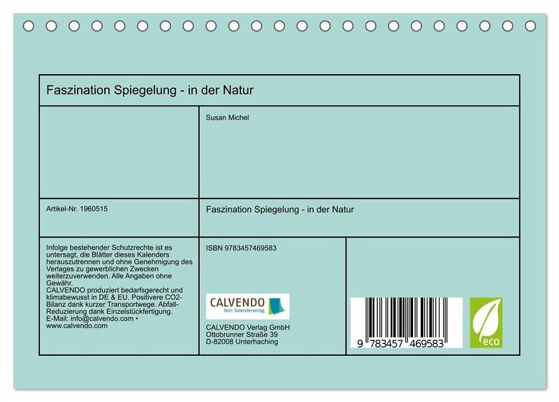 QUALITÄT - Hochwertiger Fotokalender mit 12 wunderschönen Motiven auf lichtbeständigem Bilderdruckpapier, robuste Spiralbindung.NACHHALTIG - deutliche Abfallreduzierung durch bedarfsgerechte Einzelstückfertigung, umweltfreundliches FSC-zertifiziertes Papier, Produktion in Deutschland, klimabewusste Logistik.PERFEKTES GESCHENK - Kalender für Freunde und Familie, für Kinder und Erwachsene, jung und alt, zu Weihnachten, Geburtstag oder zwischendurch.VIELFALT - Bildkalender in verschiedenen Formaten, z.B. DIN A5, DIN A4, DIN A3 sowie DIN A2. Ob Naturmotiv, Gemälde oder Fotos, ideal für ein persönliches Wohlfühlambiente.Natürliche Spiegelungen: Ästhetikin Wasser und Eis, offenbaren verborgene Schönheit von Autor(in): Susan Michel