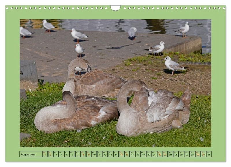 August: Jungschwäne auf der Wiese