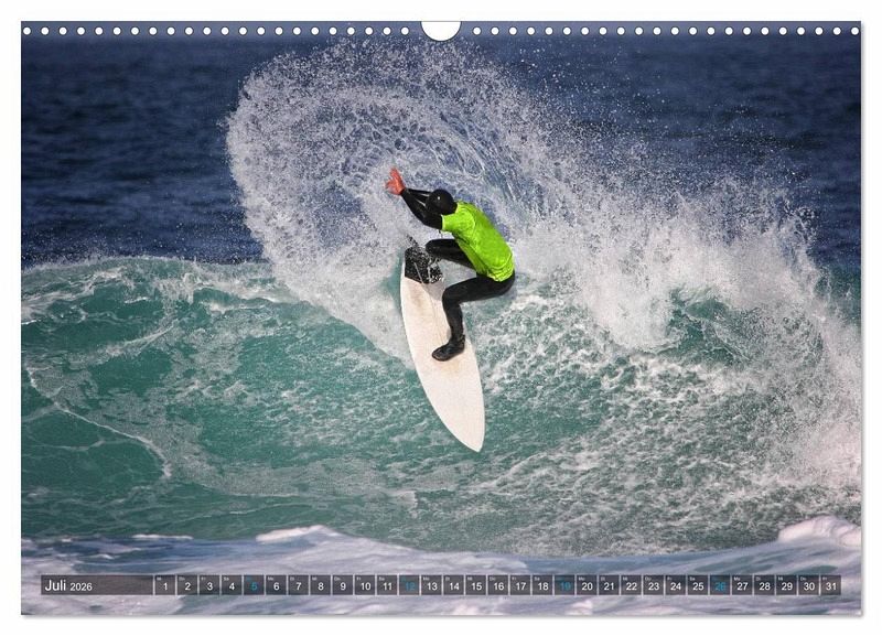 Das unbeschreibliche Gefühl die perfekte Welle bezwungen zu haben, oder ein paar Sekunden im "Green Room" geschwebt zu sein ist unglaublich! Erfreuen Sie sich an 12 atemberaubenden Surf Bildern die Sie das ganze Jahr über begleiten und die Faszination Surfen in Ihr Heim bringen.
