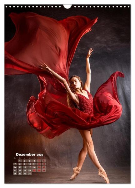 Dezember: Anmutige Ballerina im roten wehenden Kleid