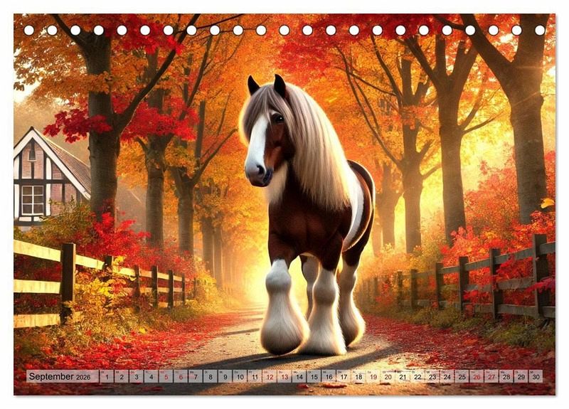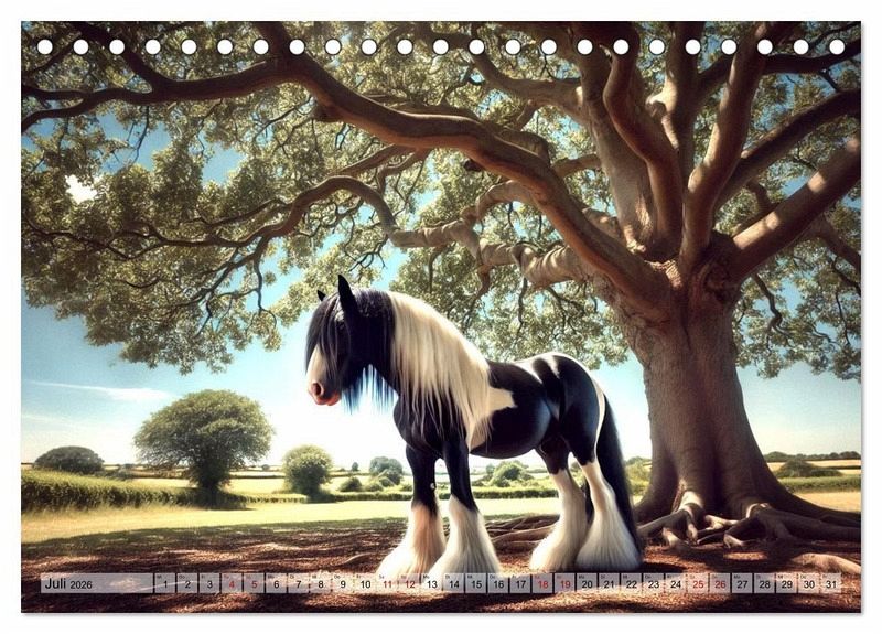 Erlebe die Anmut und Kraft der Tinker-Pferde das ganze Jahr über. Jeder Monat präsentiert eine neue Szene, die diese majestätischen Tiere in den verschiedenen Jahreszeiten zeigt. Vom klaren Winter bis zu den farbenfrohen Frühlingsblüten - jedes Bild fängt die einzigartige Schönheit und Stärke dieser legendären Pferderasse ein. Ob sie durch sommerliche Felder galoppieren oder friedlich im Schatten ruhen - diese Pferde verkörpern die perfekte Balance von Eleganz und Energie.