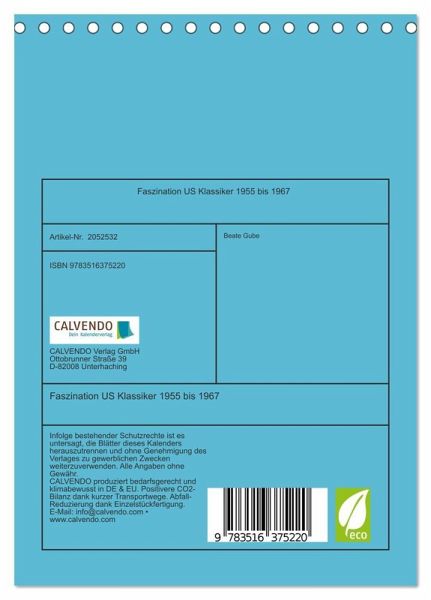 QUALITÄT - Hochwertiger Fotokalender mit 12 wunderschönen Motiven auf lichtbeständigem Bilderdruckpapier, robuste Spiralbindung.NACHHALTIG - deutliche Abfallreduzierung durch bedarfsgerechte Einzelstückfertigung, umweltfreundliches FSC-zertifiziertes Papier, Produktion in Deutschland, klimabewusste Logistik.PERFEKTES GESCHENK - Kalender für Freunde und Familie, für Kinder und Erwachsene, jung und alt, zu Weihnachten, Geburtstag oder zwischendurch.VIELFALT - Bildkalender in verschiedenen Formaten, z.B. DIN A5, DIN A4, DIN A3 sowie DIN A2. Ob Naturmotiv, Gemälde oder Fotos, ideal für ein persönliches Wohlfühlambiente.Entdecken Sie tolle amerikanische Autos aus den 1950er und 1960er Jahren. von Autor(in): Beate Gube